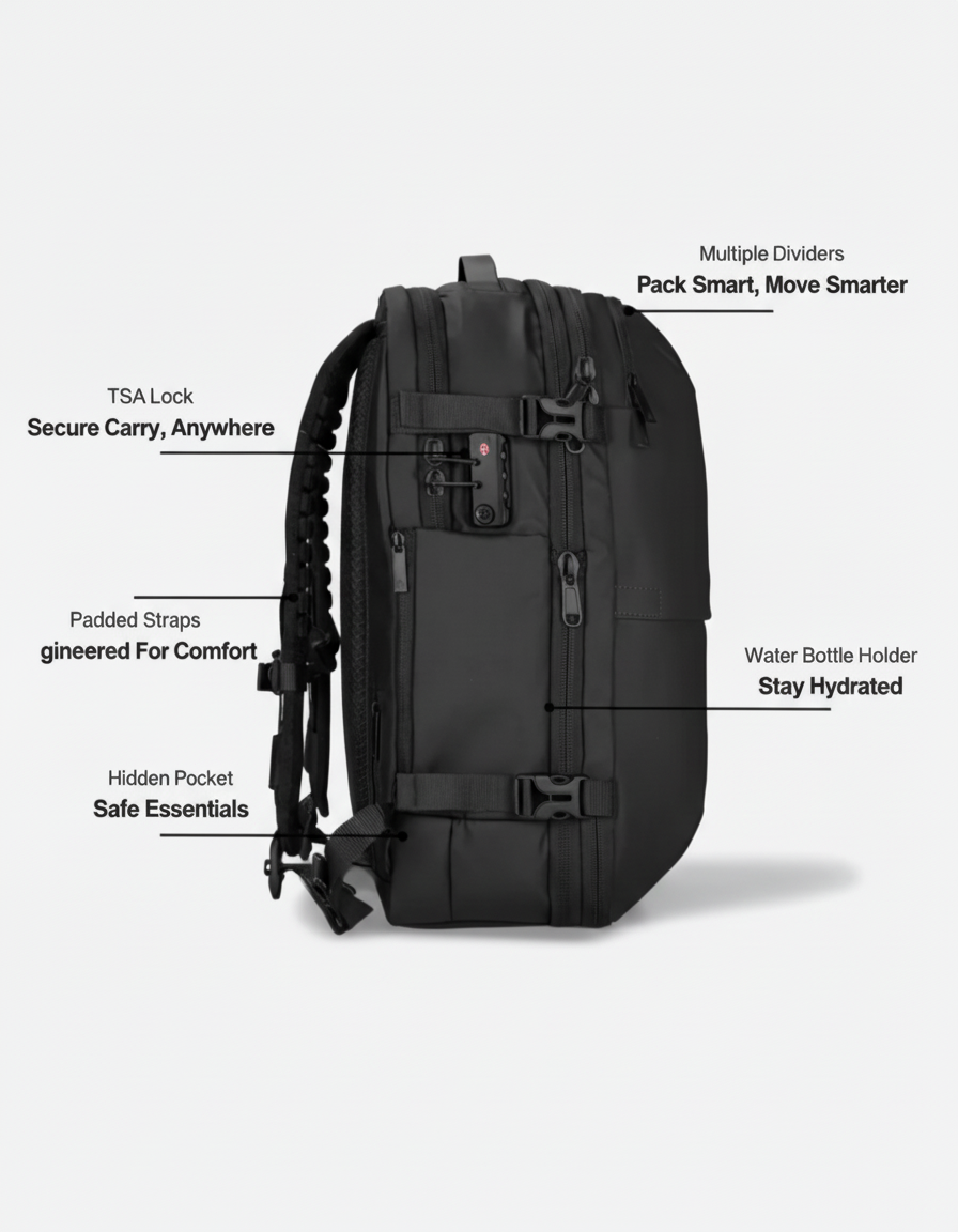 The Lexa® Original is the groundbreaking travel bag, combining style, innovation, and functionality. Featuring Lexa® compression technology, it fits 25+ clothing items with ease while staying carry-on approved. An integrated smart weight handle prevents airline overweight fees, while the TSA-approved lock keeps your belongings secure. The waterproof protection with premium coating keeps your essentials safe from rain and spills. The padded laptop compartment, USB-A/USB-C charging ports, and dedicated water bottle holder make it ideal for business or leisure. Multiple compartments ensure perfect organization, and the expandable design adds extra space when needed. Crafted from premium, durable materials, the Lexa® Original is built to travel anywhere in comfort and style.